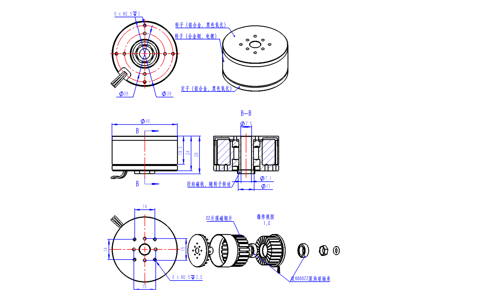 4015三相无刷直流电机集成了无刷电机与磁编码器的小型三相无刷直流电机,采用钕铁硼强磁材料外转子设计,具备中空轴结构,工作电压范围为12–36V,最大可输出3500g·cm的扭矩。电机定子采用铜芯绕组,外壳经CNC精密加工并施以黑色阳极氧化处理,兼具结构坚固性与优异散热性能。